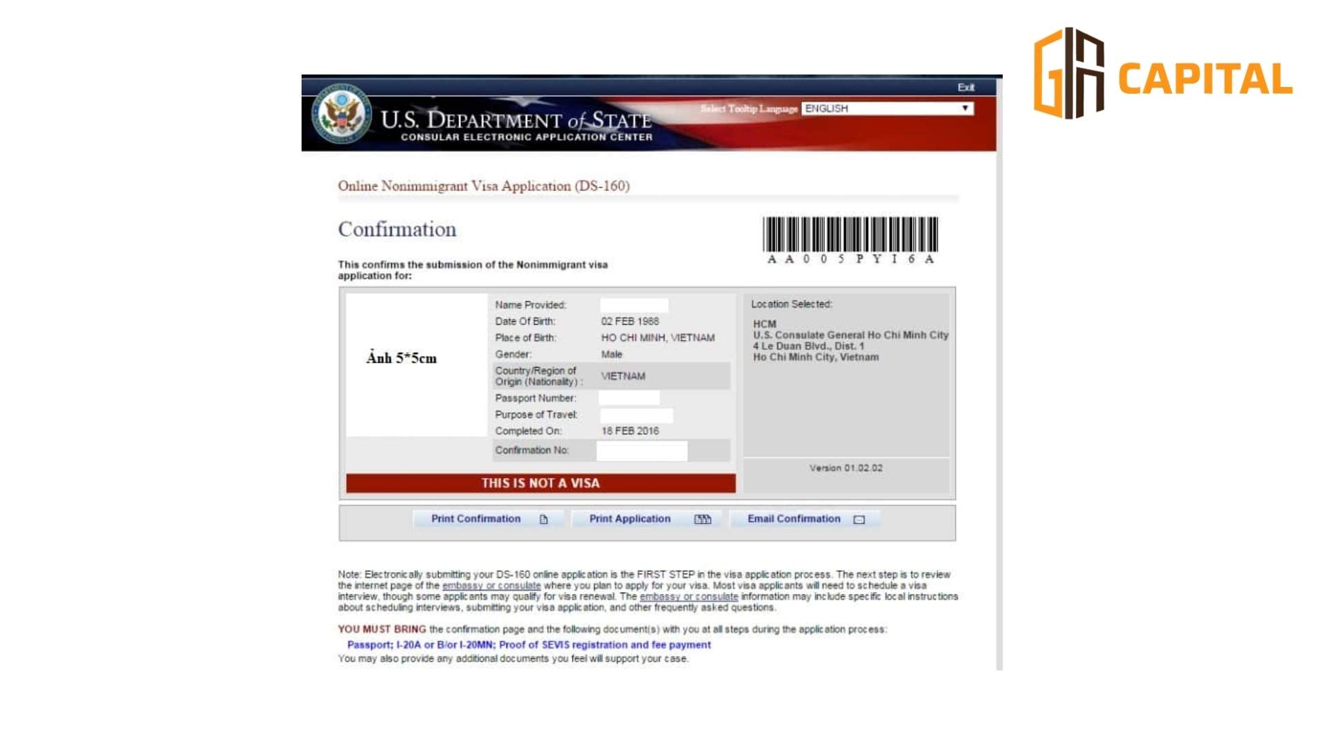 Lưu ý: DS-160 thường yêu cầu tải ảnh kỹ thuật số theo chuẩn; sau khi nộp cần lưu/ in trang xác nhận có mã vạch để phục vụ đặt lịch và phỏng vấn.